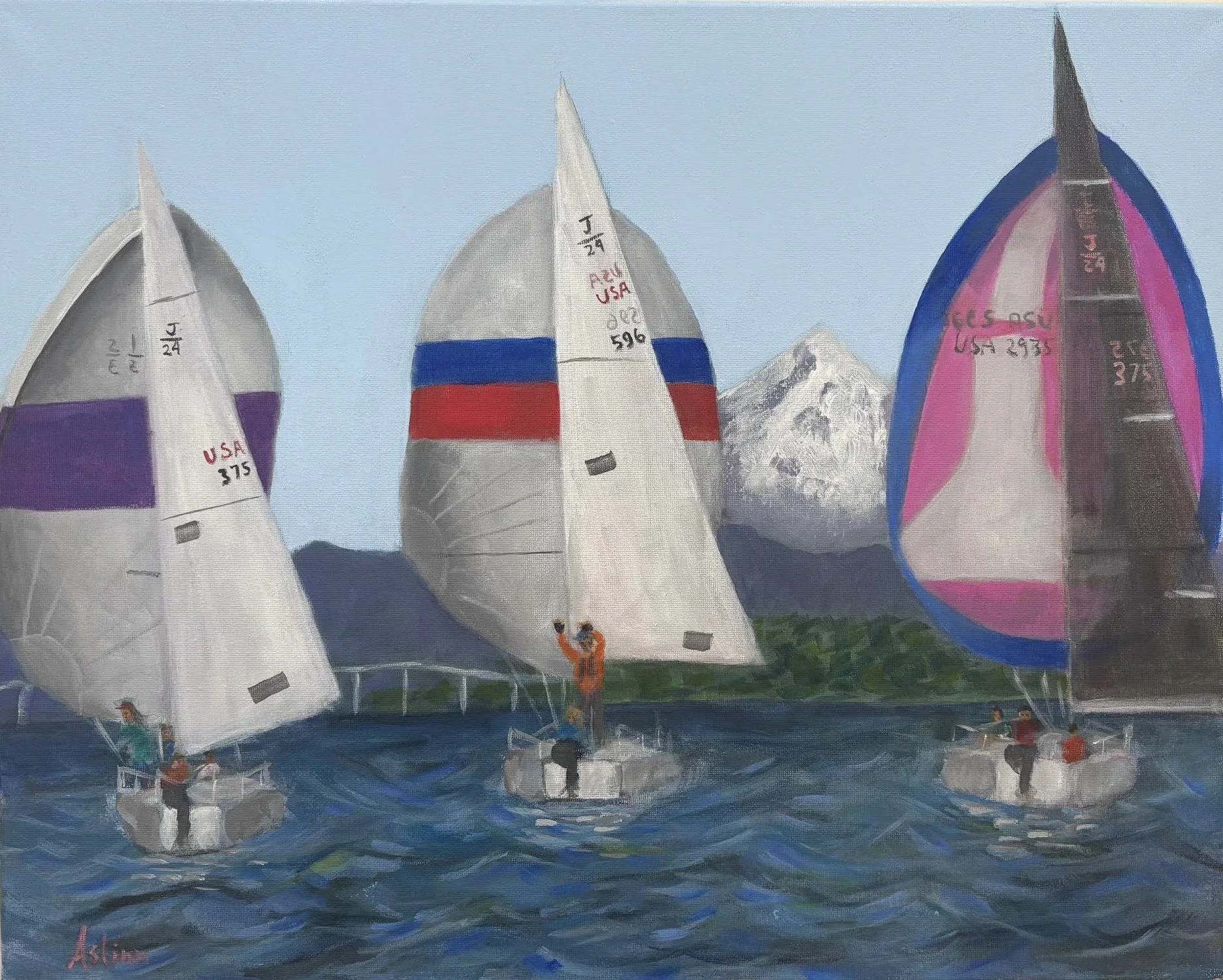 Paintings › Racing on the Columbia Racing on the Columbia $400.00 My sail buddy took this amazing photo of spinnakers hoisted and heading upwind towards Mt. Hood. My sail buddy took this amazing photo of spinnakers hoisted and heading upwind towards Mt. Hood. Add To Cart Added!